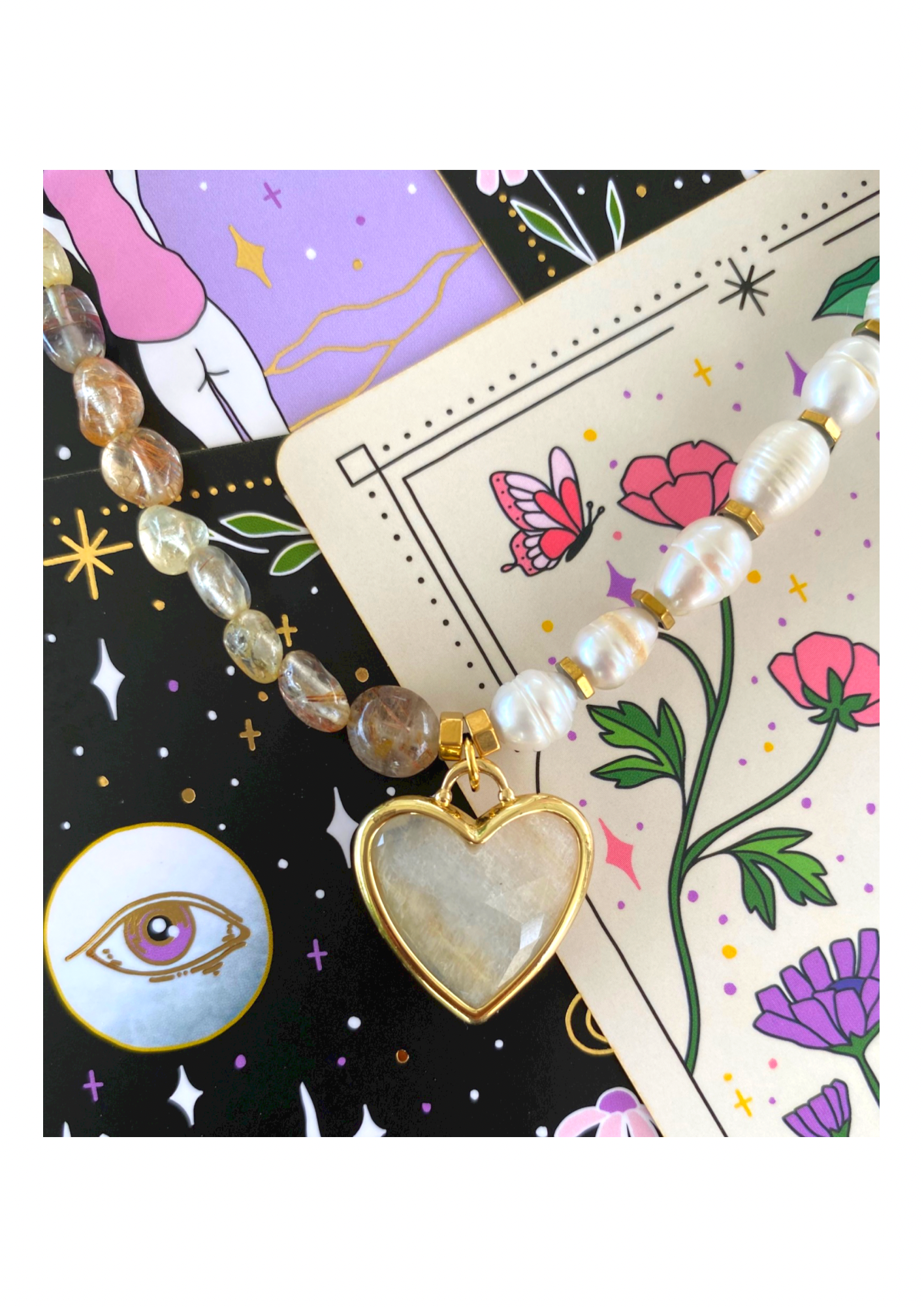 Nuestro collar perlas en la luna está inspirado en la magia y conexión de la energía lunar, y las perlas naturales.
